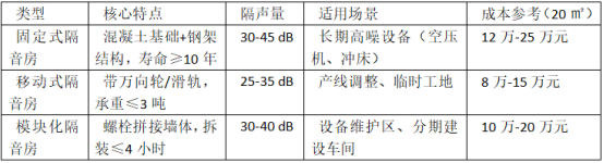 隔音房(静音房)根据结构特性、应用场景、降噪性能可分为五大核心类别,每类针对不同工业需求设计。以下为系统分类及技术参数详解:
