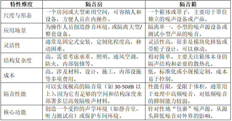隔音箱是 “设备的隔音外套” ,解决的是点声源(单个设备)的噪声问题,追求精准和高效。