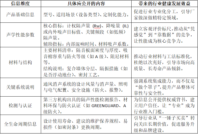 借鉴住宅领域的实践,并针对工业产品特性,一套完整的隔音房信息公开体系应包含以下核心内容: