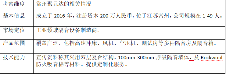 综合来看,常州聚元达是一家面向工业领域的隔音设备制造商。