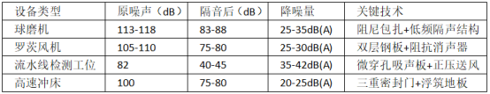 解决方案:封闭式隔音房阻断噪声传播路径,如球磨机隔音房采用“筒体包扎+阻尼层”,降噪25-35dB(A)。